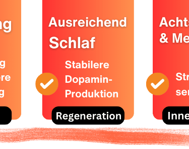 „Besser schlafen für mehr Dopamin“, „Schlaf fördert Motivation“, „Regenerierung durch Schlaf“